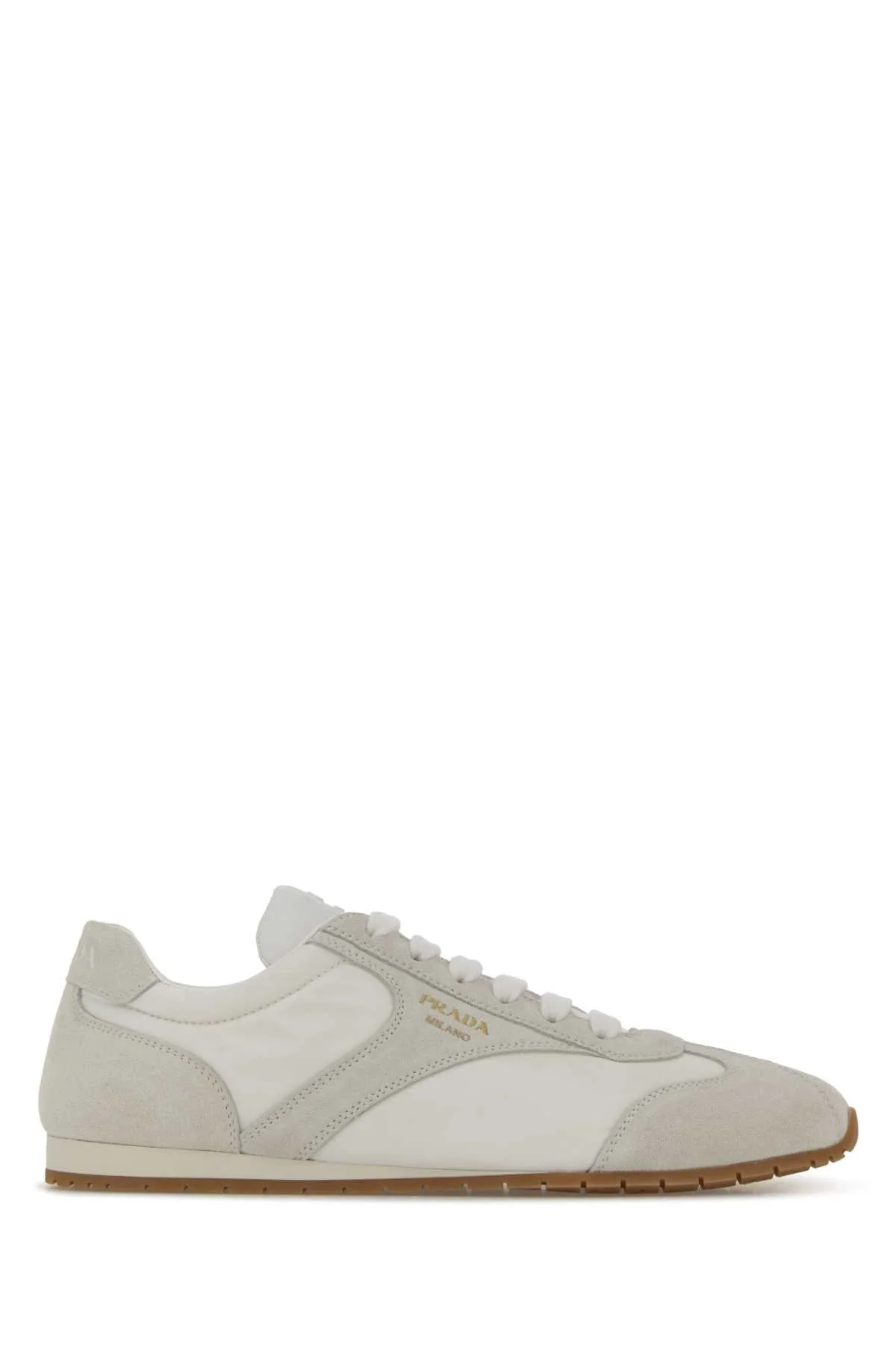 Prada Women White Suede And Re-Nylon Sneakers