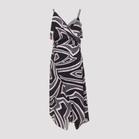 Pucci Black Silk Long Dress. Pure silk dress, thin shoulder straps, V-neck, wrap design, ruffled details, sleeveless, midi-length, asymmetric hem. Grey and pink geometric pattern all-over. Silk | 100%SILK Size Type: IT SKU: 5URH155U746Black Our Products Are 100% Genuine. In All Cases We Stand By The Authenticity Of Every Product Sold On Our Site. All sales are final and we only accept returns for quality issue. Buyer is responsible for any import tax/duty if applicable.