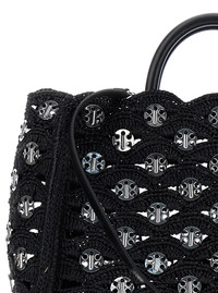 Rabanne Women Black Handbag With Weaving And All-Over Disc Details In Raphia Woman
