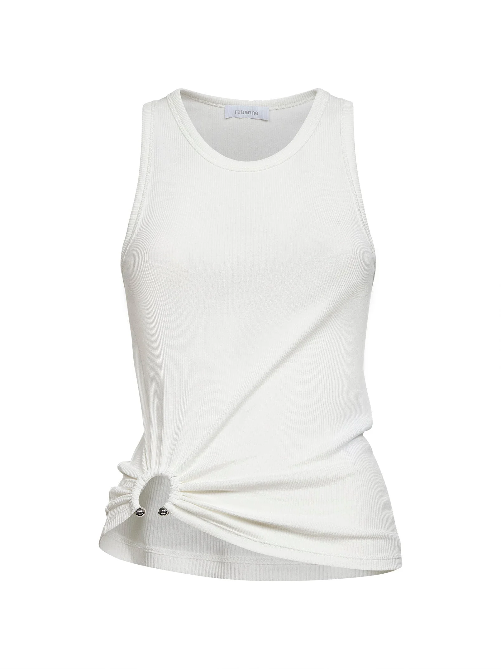 Rabanne Women White Ribbed Stretch Cotton Tank Top With Piercing