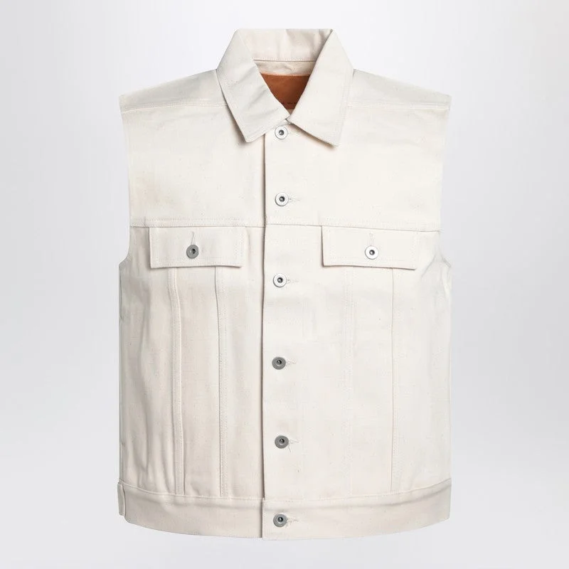 Ivory cotton denim gilet by DRKSHDW, featuring a front button closure, a shirt collar, two chest pockets with flap and button, two side welt pockets, and a hem with buttons. Model wears size L Model measurements: Height: 187 cm Chest: 102 cm Waist: 76 cm Hips: 92 cm Size Type: INT Material: Denim SKU: DL01E6798HNJP/QDARKS21323 Our Products Are 100% Genuine. In All Cases We Stand By The Authenticity Of Every Product Sold On Our Site. All sales are final and we only accept returns for quality issue. Buyer is responsible for any import tax/duty if applicable.