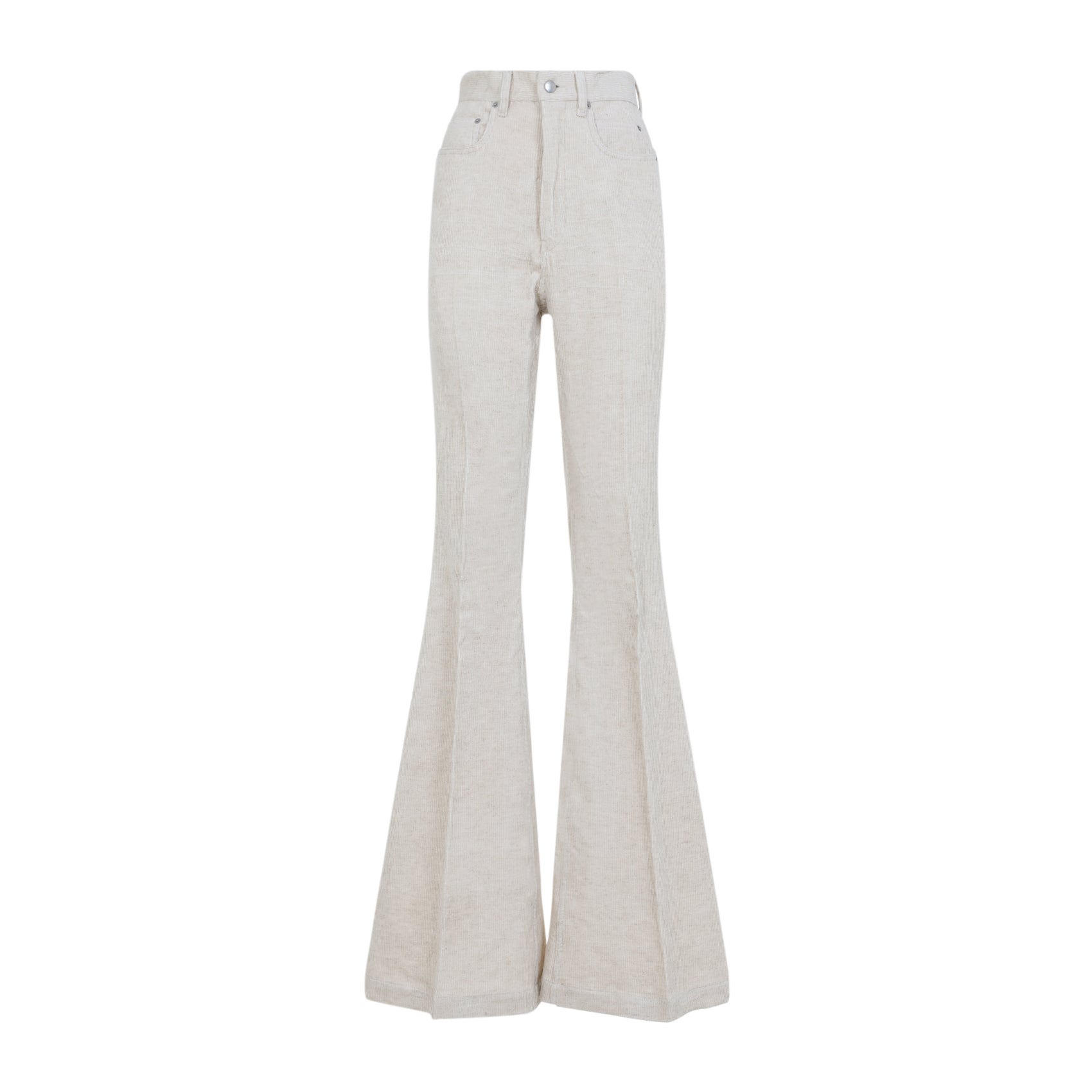 Rick Owens Natural White Cotton Bolan Bootcut Pants. Crafted in cotton and linen blend, front concealing zipped fastening, front buttoned fastening, belt loops, five pockets design, flared leg, straight hem. Cotton | 74%COTTON 26%LINEN Size Type: CM SKU: RP02E4329MLCWhite Our Products Are 100% Genuine. In All Cases We Stand By The Authenticity Of Every Product Sold On Our Site. All sales are final and we only accept returns for quality issue. Buyer is responsible for any import tax/duty if applicable.