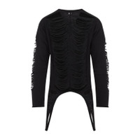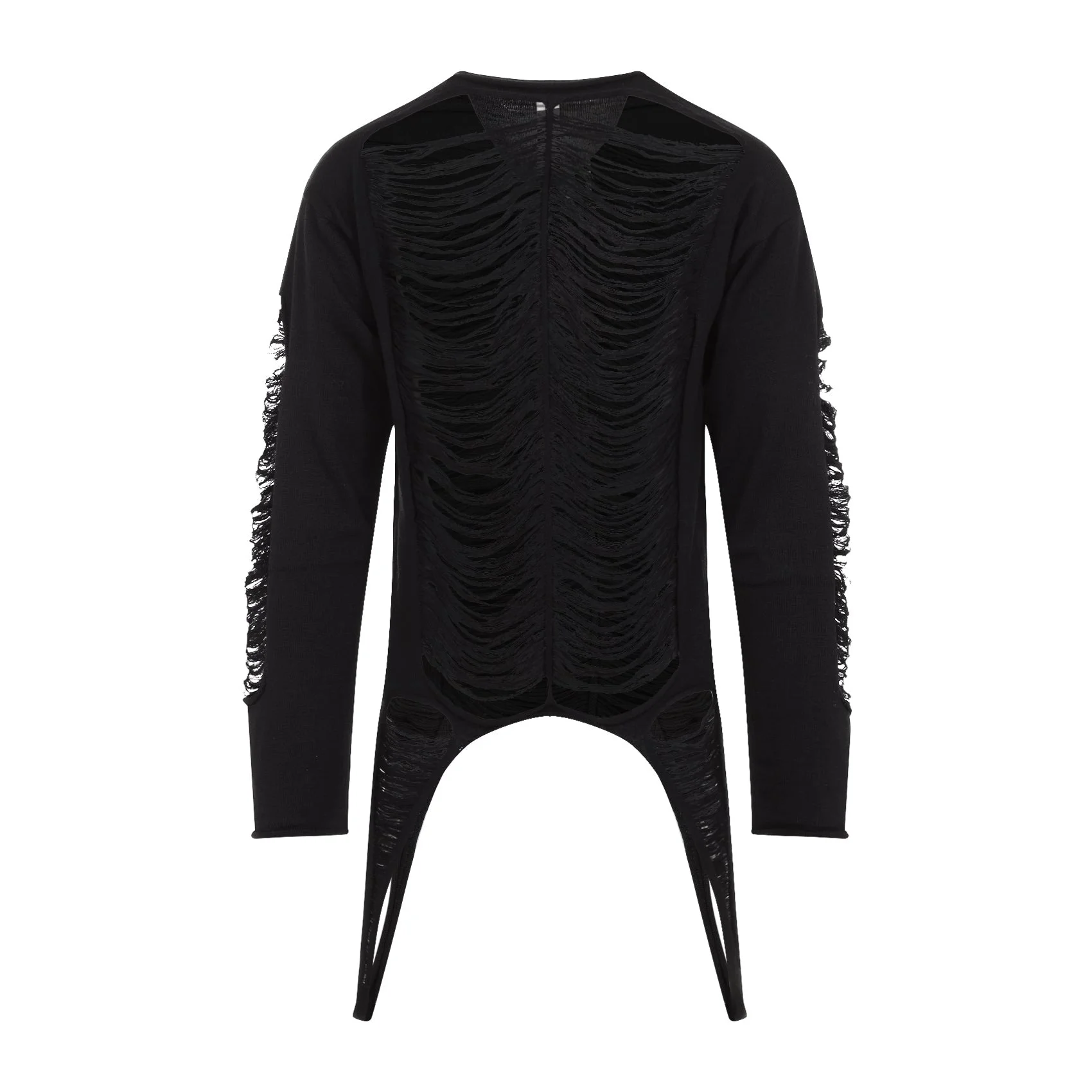 Rick Owens Black Virgin Wool Long Sleeves Top. Pure black virgin wool top. Slight boat neck, shredded merino knit design all-over, front and back tonal channel, dropped shoulders, side loops hip-length, asymmetric hem. Wool | 100%VIRGIN WOOL Size Type: INT SKU: RR01E5671KGRIDMBlack Our Products Are 100% Genuine. In All Cases We Stand By The Authenticity Of Every Product Sold On Our Site. All sales are final and we only accept returns for quality issue. Buyer is responsible for any import tax/duty if applicable.