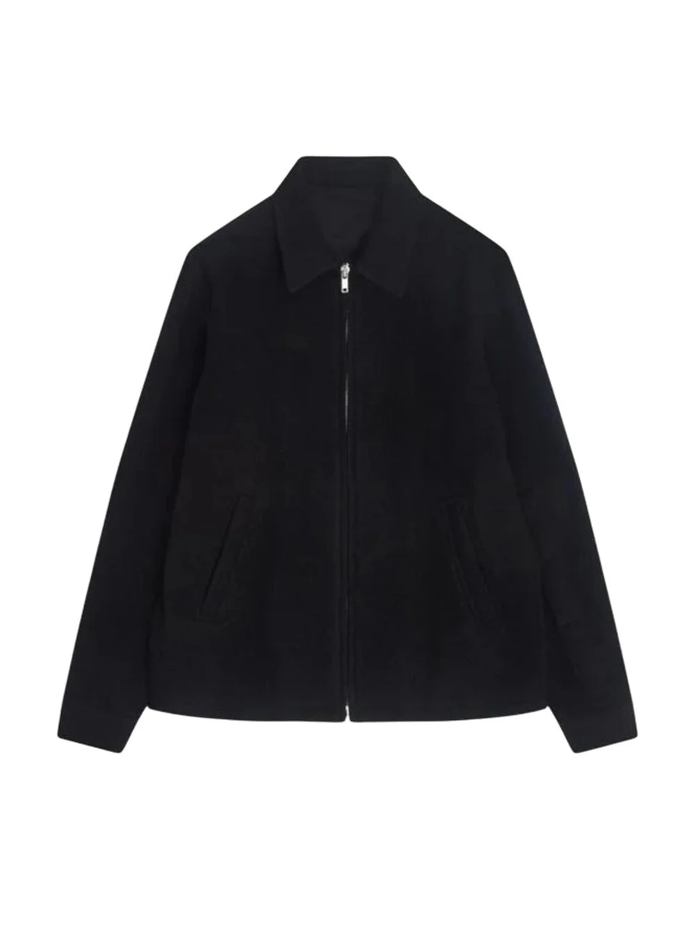 pointed-collar zip-front shirt jacket