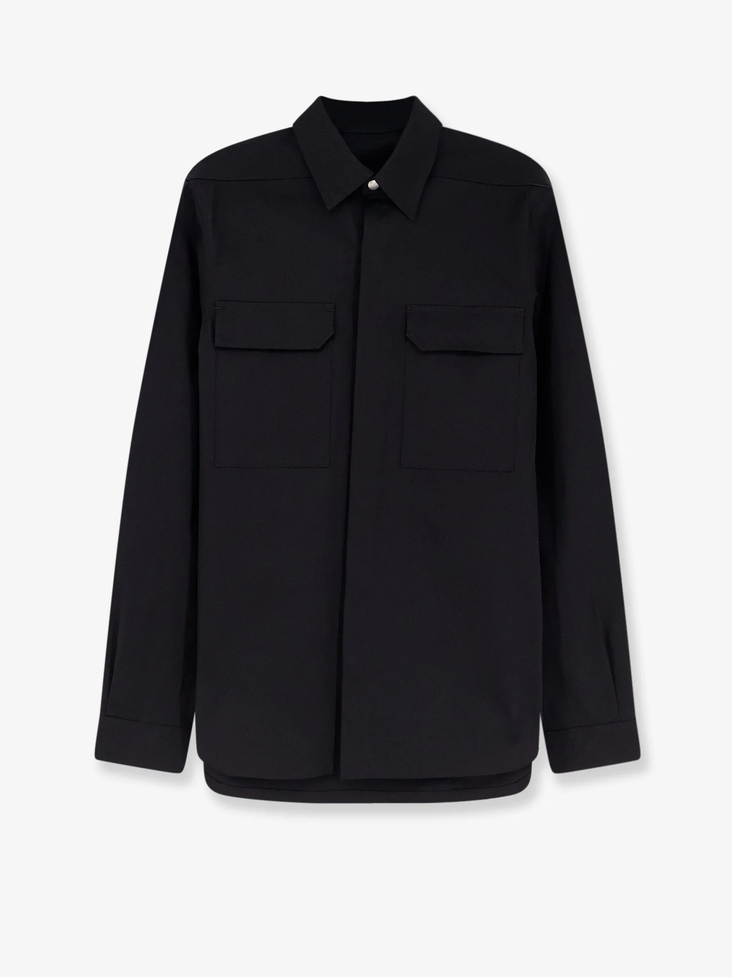 Brand: RICK OWENS Product reference:RU01F2236 Color reference:TE09 Color:Black Season:26P Gender:Man Category 1:Abbigliamento Category 2:Shirts Made in:ITALIA Concealed snap closure Pointed collar Long sleeves with buttoned cuffs Double front flap pockets Made in Italy 97% certified cotton, 3% elastane SKU: RU01F2236TE09 Size Type: IT SKU: RU01F2236E09 Our Products Are 100% Genuine. In All Cases We Stand By The Authenticity Of Every Product Sold On Our Site. All sales are final and we only accept returns for quality issue. Buyer is responsible for any import tax/duty if applicable.