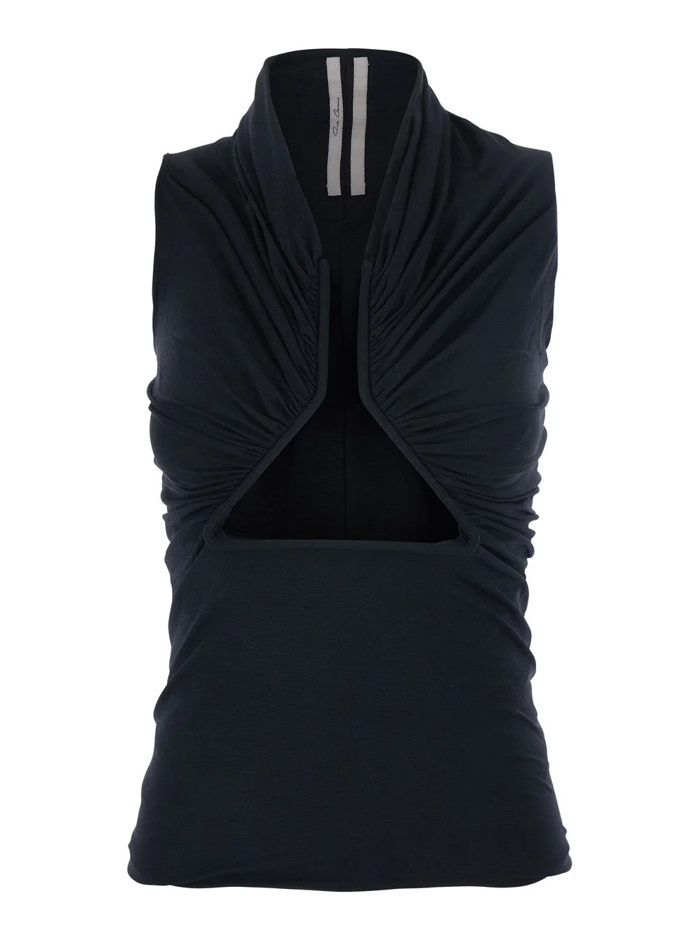 Rick Owens Women Black Top With Ruffled Design And Front Slit In Fabric Woman