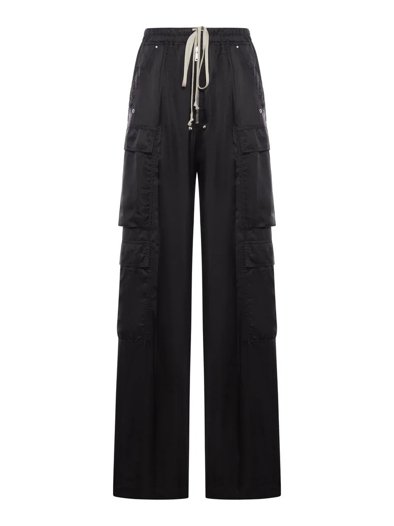 -Low crotch -Wide leg -Elasticized waistband with drawstring -Exposed center zip -Side welt pockets with rivets and eyelets -Four beveled cargo pockets on the sides of the leg -Two back welt pockets with hidden snaps -Black Made in Italy Composition: Cupro 100% cupro Color code: 09 BLACK Size Type: IT SKU: RP02E4327K Our Products Are 100% Genuine. In All Cases We Stand By The Authenticity Of Every Product Sold On Our Site. All sales are final and we only accept returns for quality issue. Buyer is responsible for any import tax/duty if applicable.