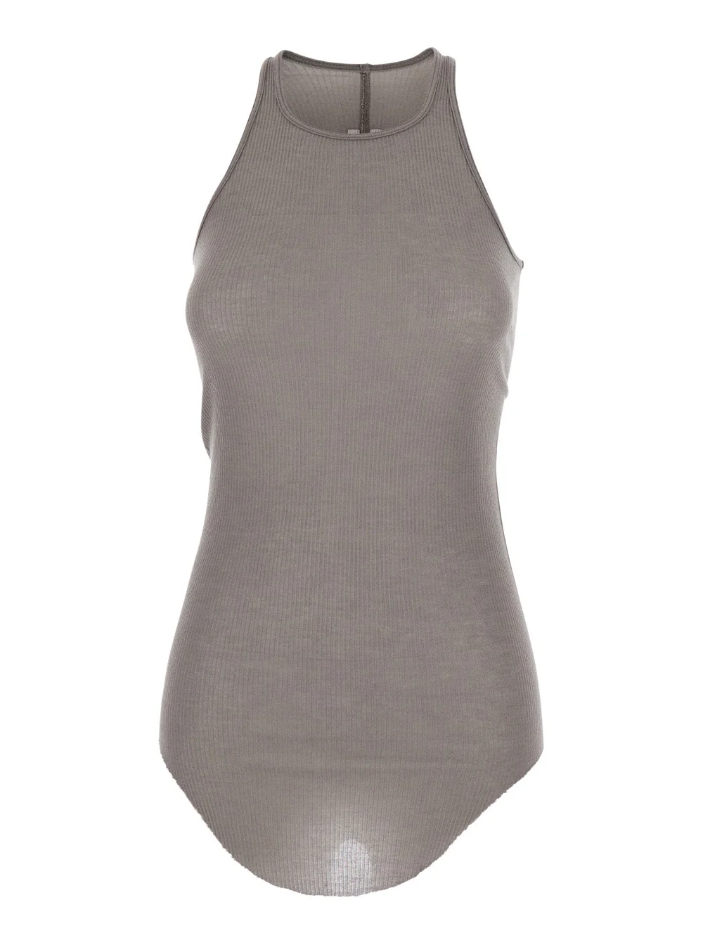 Rick Owens Women Grey Top With Ribbed Design And U-Neck In Viscose And Silk Blend Woman
