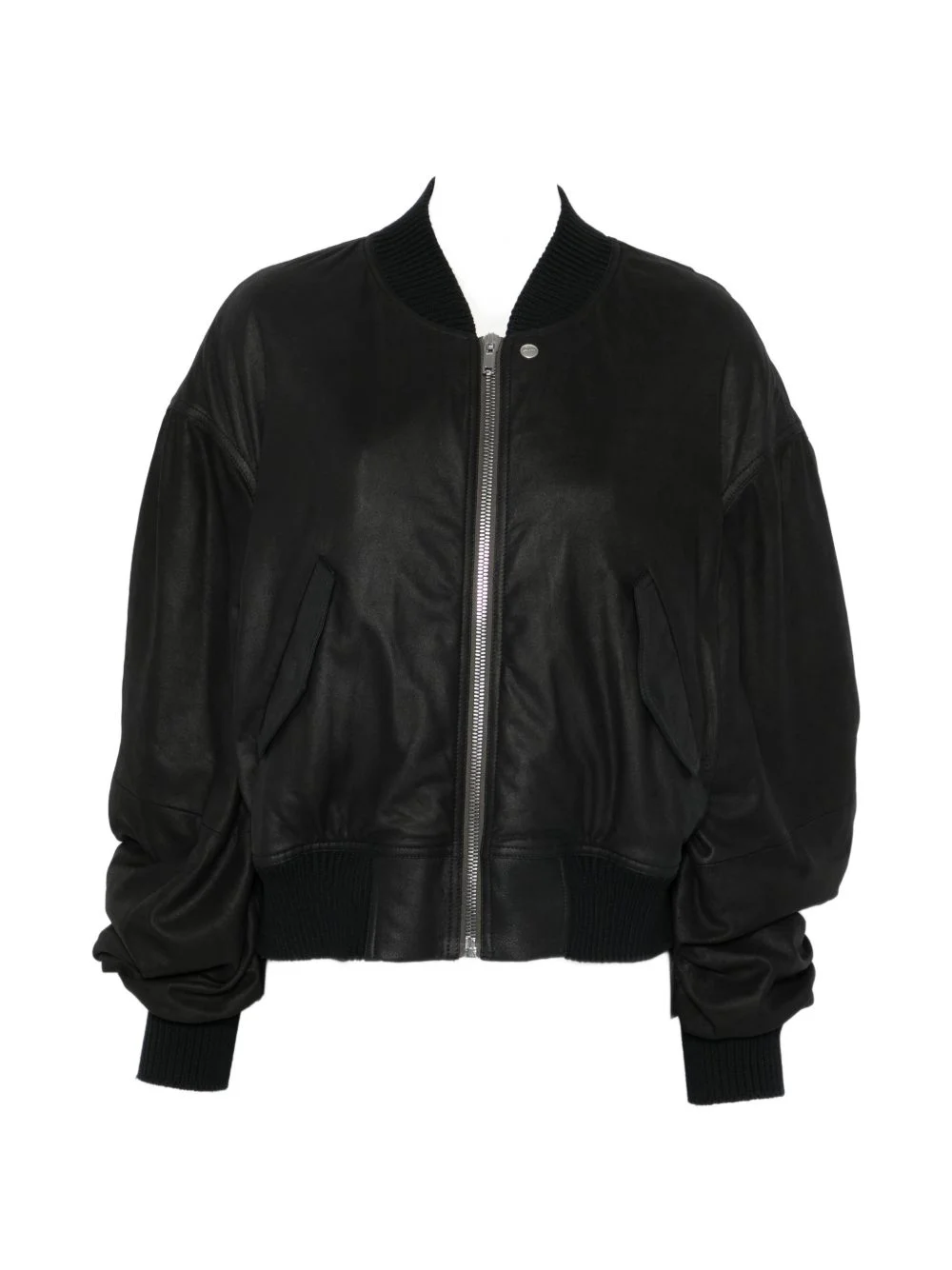 zip-up leather bomber jacket