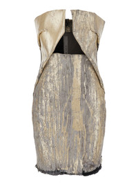 Dress Metallic Bare shoulders Sleeveless Cut out detail on the front Gathered detail Zip closure on the back Distressed effect Above the knee length Straight hem Cotton blend Slim fit SKU: RP01E7531SGMC02 Our Products Are 100% Genuine. In All Cases We Stand By The Authenticity Of Every Product Sold On Our Site. All sales are final and we only accept returns for quality issue. Buyer is responsible for any import tax/duty if applicable.