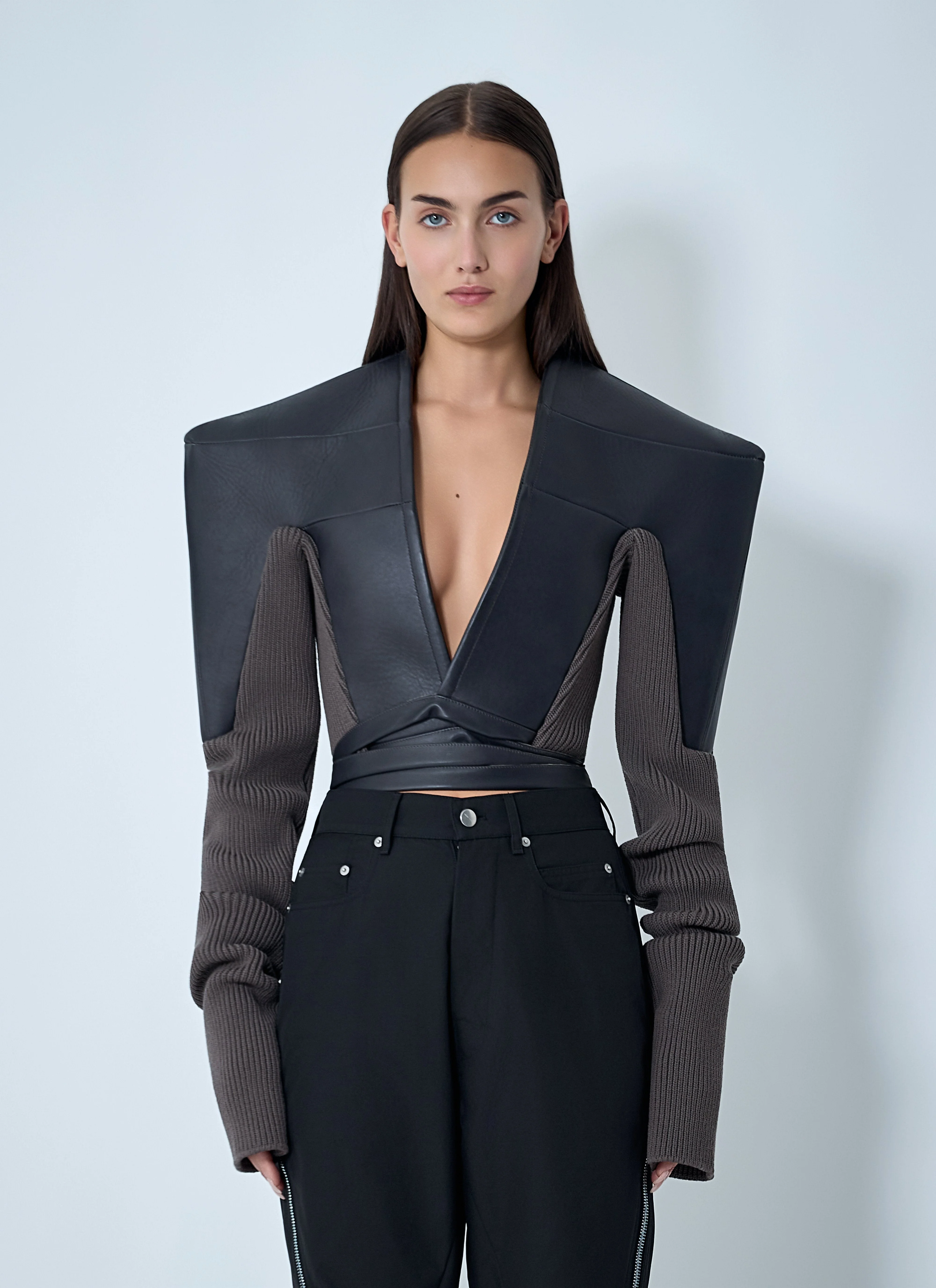 Leather jacket with contrast rib trims. Plunge neckline Self-tie fastening at waist Long sleeves Contrast panels 100% Leather RO02E4784 LOORE 78 SKU: RO02E4784LOORE78 Our Products Are 100% Genuine. In All Cases We Stand By The Authenticity Of Every Product Sold On Our Site. All sales are final and we only accept returns for quality issue. Buyer is responsible for any import tax/duty if applicable.
