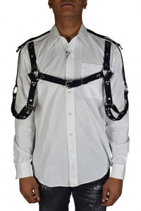 <p>Roberto Cavalli white harness style shirt. Leather straps with silver metal rings and buckle. Classic point collar. Long sleeves with buttoned cuffs. Patch chest pocket. Logo patch at neck. Front button placket. Made in Italy.</p> Size Type: INT SKU: PNT740CH08900053 Our Products Are 100% Genuine. In All Cases We Stand By The Authenticity Of Every Product Sold On Our Site. All sales are final and we only accept returns for quality issue. Buyer is responsible for any import tax/duty if applicable.