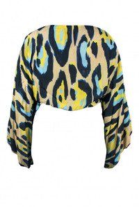 <p>Yellow and blue viscose kaftan by Roberto Cavalli. Jaguar print. Long sleeves draped. Removable tie belt at the waist. Boat neck. Made in Italy.</p> Size Type: INT SKU: QKT725FVF64 Our Products Are 100% Genuine. In All Cases We Stand By The Authenticity Of Every Product Sold On Our Site. All sales are final and we only accept returns for quality issue. Buyer is responsible for any import tax/duty if applicable.