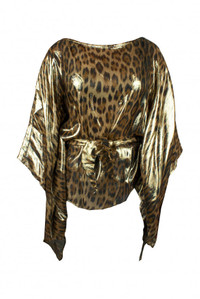 <p>Gold silk kaftan by Roberto Cavalli. Leopard print. Shiny effect. Long draped sleeves. Tie belt at waist. Boat neck. Made in Italy.</p> Size Type: INT SKU: QKT725XFF53 Our Products Are 100% Genuine. In All Cases We Stand By The Authenticity Of Every Product Sold On Our Site. All sales are final and we only accept returns for quality issue. Buyer is responsible for any import tax/duty if applicable.