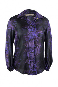 <p>Purple silk shirt Roberto Cavalli. Snake skin print. Long puffed sleeves. Buttoned cuffs. Pointed collar. Concealed button front closure. Made in Italy.</p> Size Type: INT SKU: PQT7004QF01 Our Products Are 100% Genuine. In All Cases We Stand By The Authenticity Of Every Product Sold On Our Site. All sales are final and we only accept returns for quality issue. Buyer is responsible for any import tax/duty if applicable.