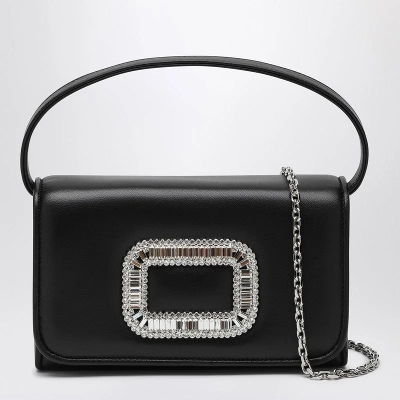 Black leather micro bag from Roger Vivier featuring a fixed handle, a removable metal chain, a front buckle with crystals, a magnetic button fastening and an inside pocket. Width 18 cm x Height 10,5 cm x Depth 6 cm Shoulder strap length 100 cm Handle drop: 13 cm Size Type: INT Material: Leather SKU: RBWABDH0000YDR/QROGVIB999100 Our Products Are 100% Genuine. In All Cases We Stand By The Authenticity Of Every Product Sold On Our Site. All sales are final and we only accept returns for quality issue. Buyer is responsible for any import tax/duty if applicable.