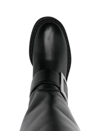 black calf leather adjustable side strap knee-length decorative logo-engraved buckle detail round toe branded leather insole 50mm platform sole rubber outsole Size Type: IT SKU: RVW74038990TTQB999 Our Products Are 100% Genuine. In All Cases We Stand By The Authenticity Of Every Product Sold On Our Site. All sales are final and we only accept returns for quality issue. Buyer is responsible for any import tax/duty if applicable.