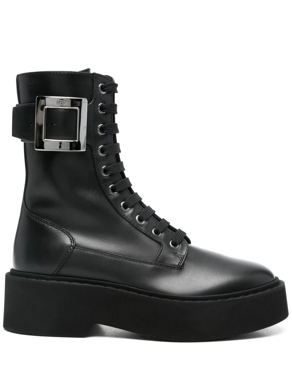 black calf leather smooth grain side zip fastening front lace-up fastening logo-buckle detail round toe branded leather insole chunky rubber sole Size Type: IT SKU: RVW74040460SOAB999 Our Products Are 100% Genuine. In All Cases We Stand By The Authenticity Of Every Product Sold On Our Site. All sales are final and we only accept returns for quality issue. Buyer is responsible for any import tax/duty if applicable.