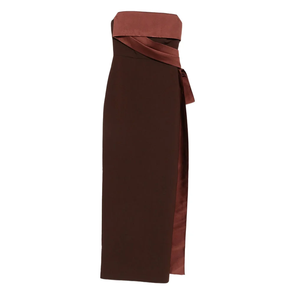 brown strapless tie detail side slit below-the-knee lengthMADE IN:ChinaMATERIAL:Outer Composition Polyester: 74.0%, Lining Composition Polyester: 100.0%, Outer Composition Viscose: 19.0%, Outer Composition Elastane: 7.0%COLOR:BROWN SKU: 037GSTBROWN Our Products Are 100% Genuine. In All Cases We Stand By The Authenticity Of Every Product Sold On Our Site. All sales are final and we only accept returns for quality issue. Buyer is responsible for any import tax/duty if applicable.