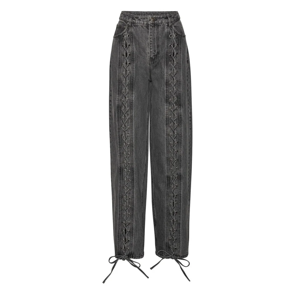 grey organic cotton laced leg detail eyelet accents drawstring fastening MADE IN:ChinaMATERIAL:Organic Cotton: 100.0%COLOR:GREY SKU: 115069100DENIMLACE100 Our Products Are 100% Genuine. In All Cases We Stand By The Authenticity Of Every Product Sold On Our Site. All sales are final and we only accept returns for quality issue. Buyer is responsible for any import tax/duty if applicable.
