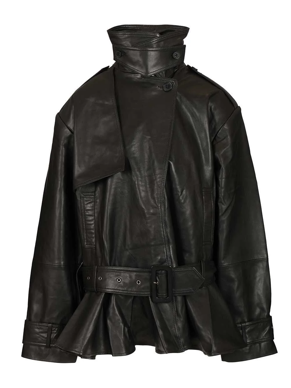 Rotate's soft lambskin biker jacket features a structured collar, button front fastening and detachable belt, and a gathered peplum hem. 100% POLYESTER (RECYCLED) 100% LEATHER (LAMB) Made in: IN SKU: 115134100100 Our Products Are 100% Genuine. In All Cases We Stand By The Authenticity Of Every Product Sold On Our Site. All sales are final and we only accept returns for quality issue. Buyer is responsible for any import tax/duty if applicable.