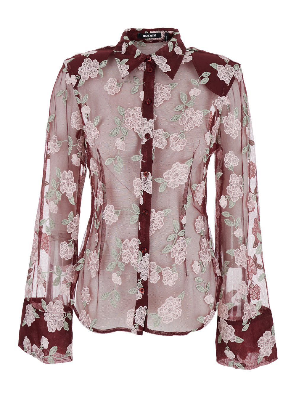 floral-embroidered mesh shirt