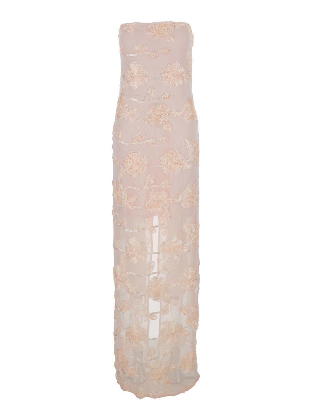 Rotate Women Pink Off-Shoulder Sleeveless Long Dress With All-Over Floral Embroidey And Rear Single