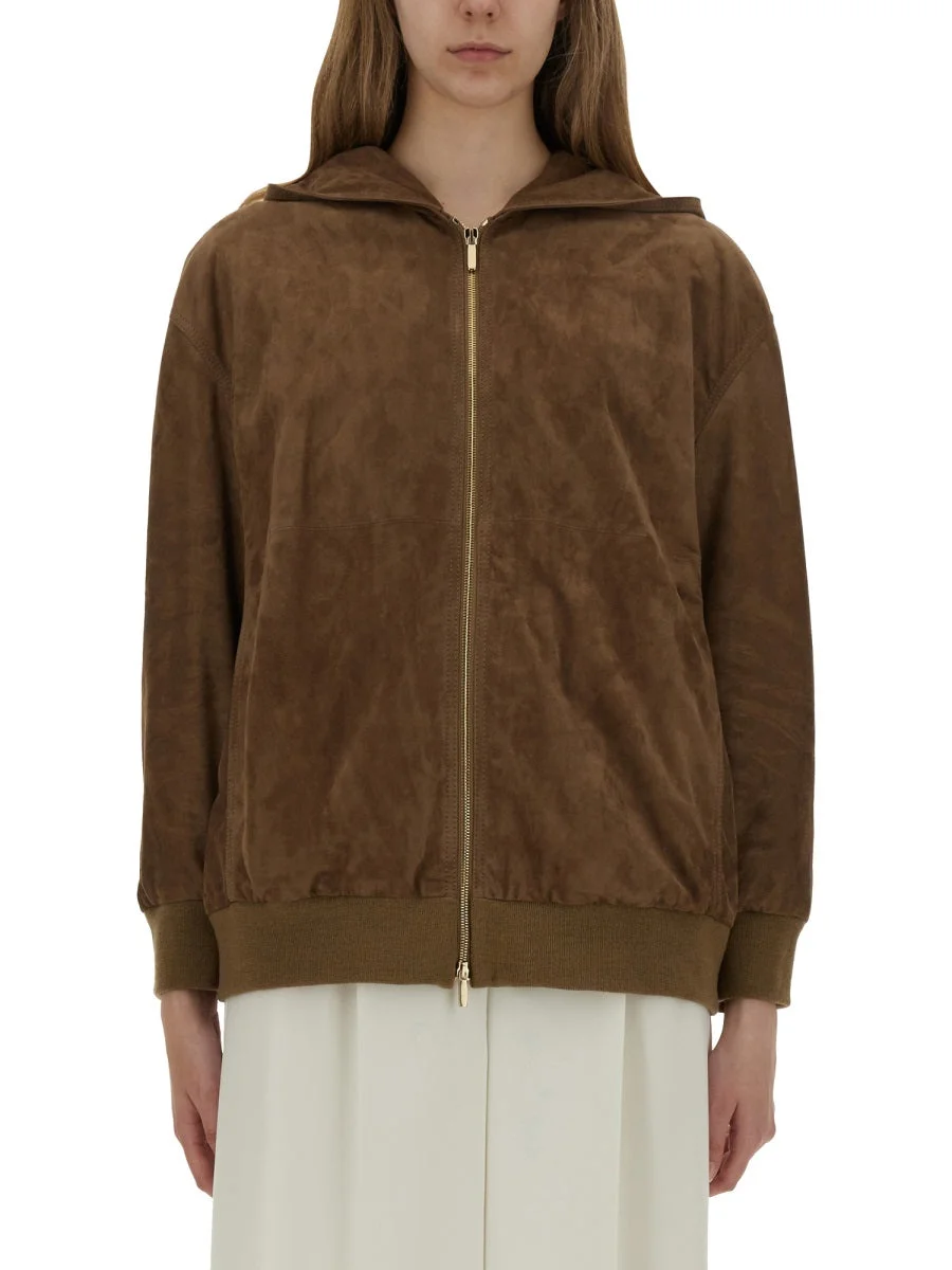 Suede jacket with hood - HONEY