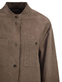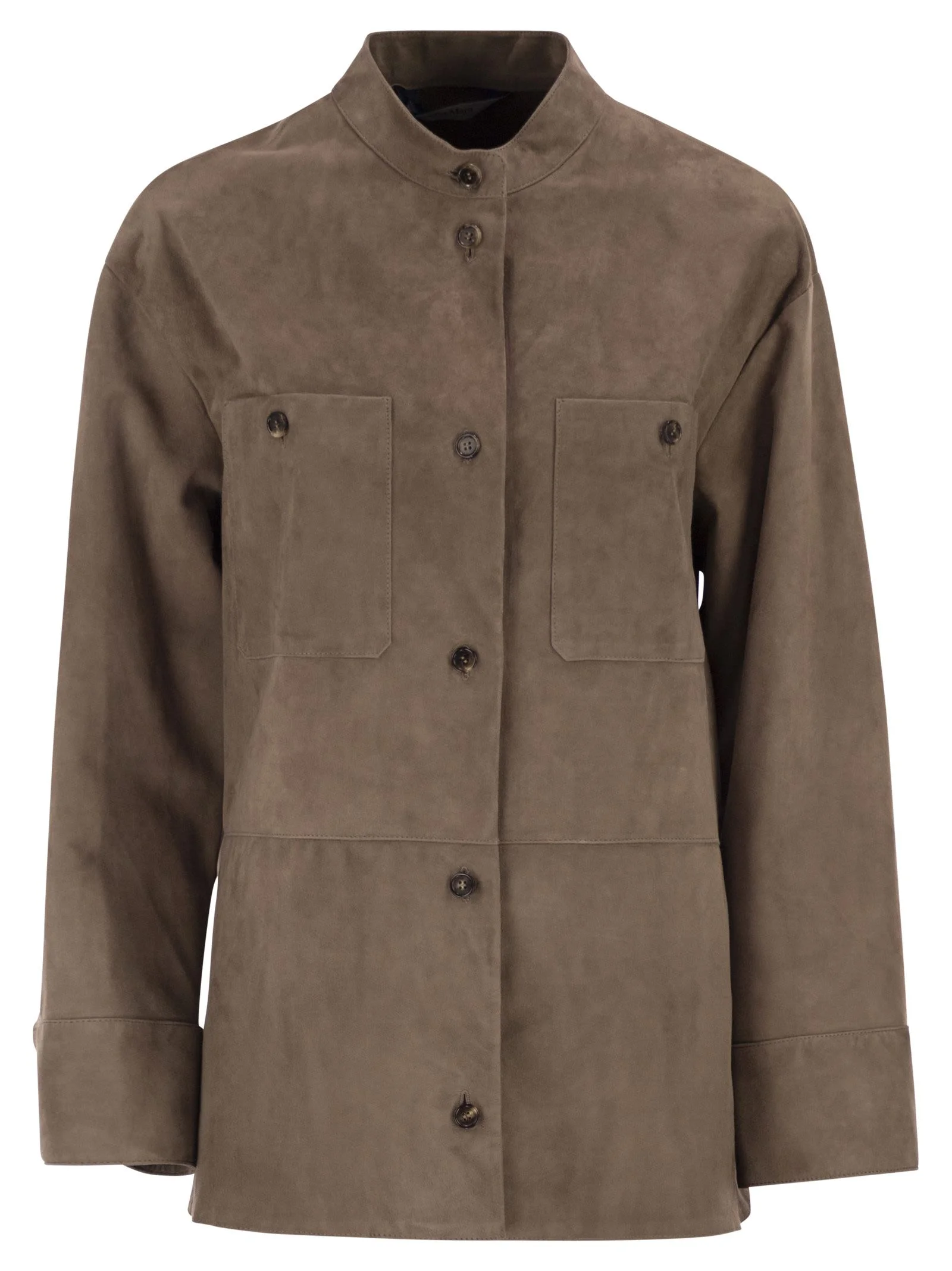 Midi suede jacket featuring leather goods-style cuts and stitching. - Stand-up collar - Set-in sleeves with cuffs and buttons at the back - Front closure with horn buttons - Patch pockets with buttons on the chest - Asymmetrical hem, longer at the back - Unlined DESIGNER ID: 2619441021600 001 Lambskin Size Type: IT SKU: 2619441021600001 Our Products Are 100% Genuine. In All Cases We Stand By The Authenticity Of Every Product Sold On Our Site. All sales are final and we only accept returns for quality issue. Buyer is responsible for any import tax/duty if applicable.