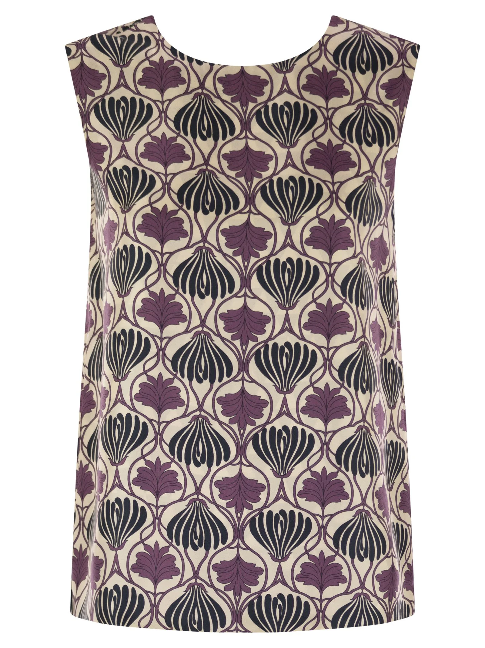 Reversible top in pure silk twill with contrasting printed pattern on inside and outside - Straight line - Crew neck with small V-cut on the back - Sleeveless - Small side slits at the bottom DESIGNER ID: 2529166012600 003 100% Silk Size Type: IT SKU: 2529166012600003 Our Products Are 100% Genuine. In All Cases We Stand By The Authenticity Of Every Product Sold On Our Site. All sales are final and we only accept returns for quality issue. Buyer is responsible for any import tax/duty if applicable.
