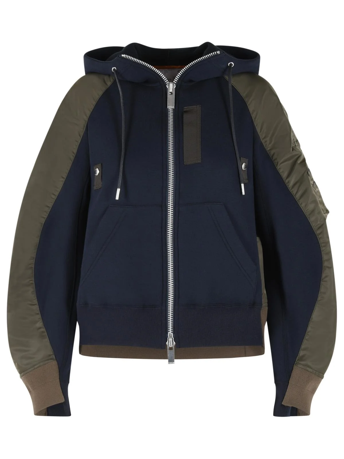 Sacai Hoodie In Navy Cotton And Khaki Blend Women