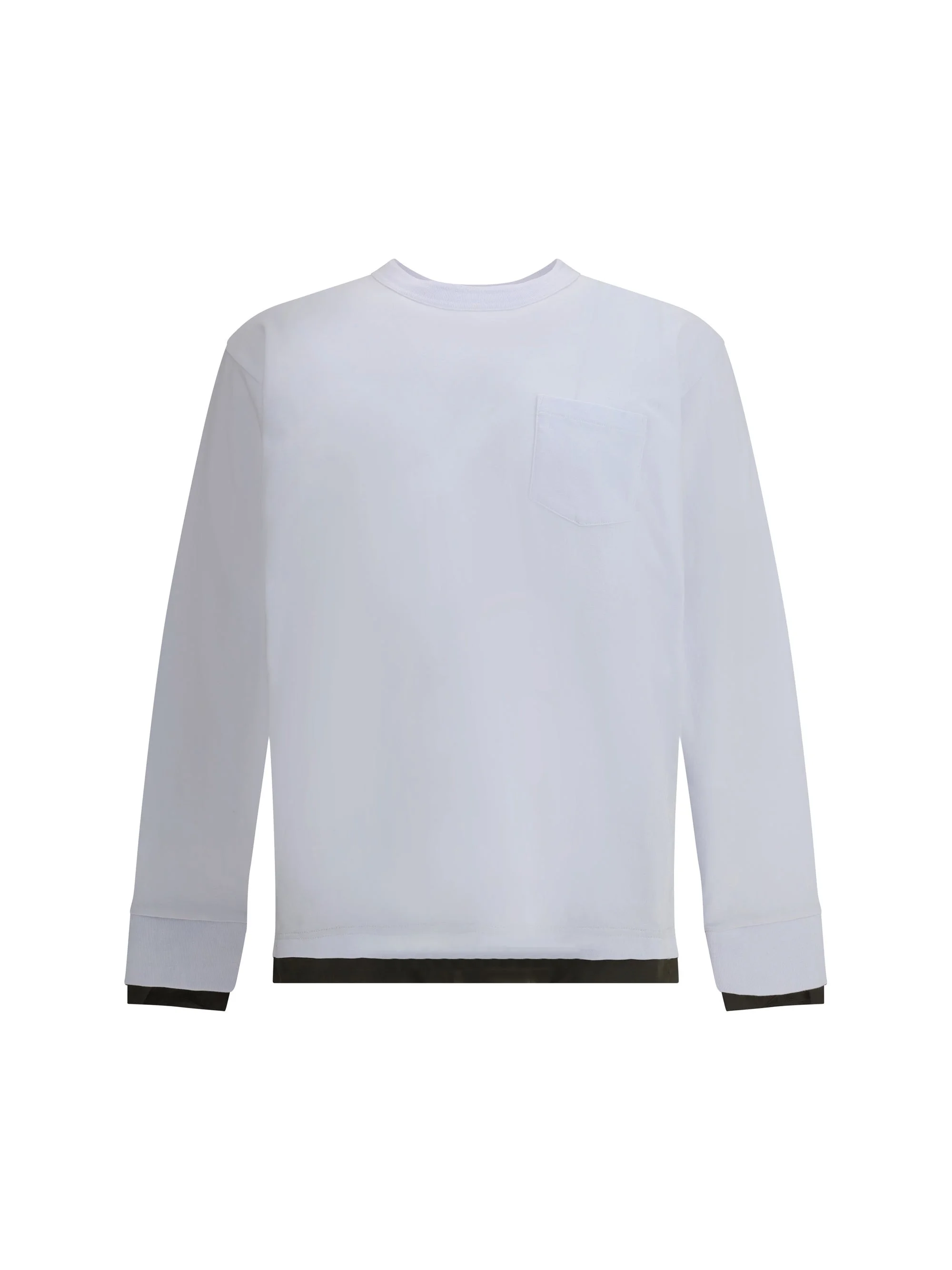 Cotton Long Sleeve Jersey by Sacai, with a contemporary style and an oversized fit. Ribbed crewneck, welt pocket applied to the front and deep side slits with buttons for adjustment. Double-layer hem and cuffs add a distinctive touch to the design, combining functionality and aesthetics in perfect Sacai style. Size Type: NUM SKU: 2503795M101 Our Products Are 100% Genuine. In All Cases We Stand By The Authenticity Of Every Product Sold On Our Site. All sales are final and we only accept returns for quality issue. Buyer is responsible for any import tax/duty if applicable.