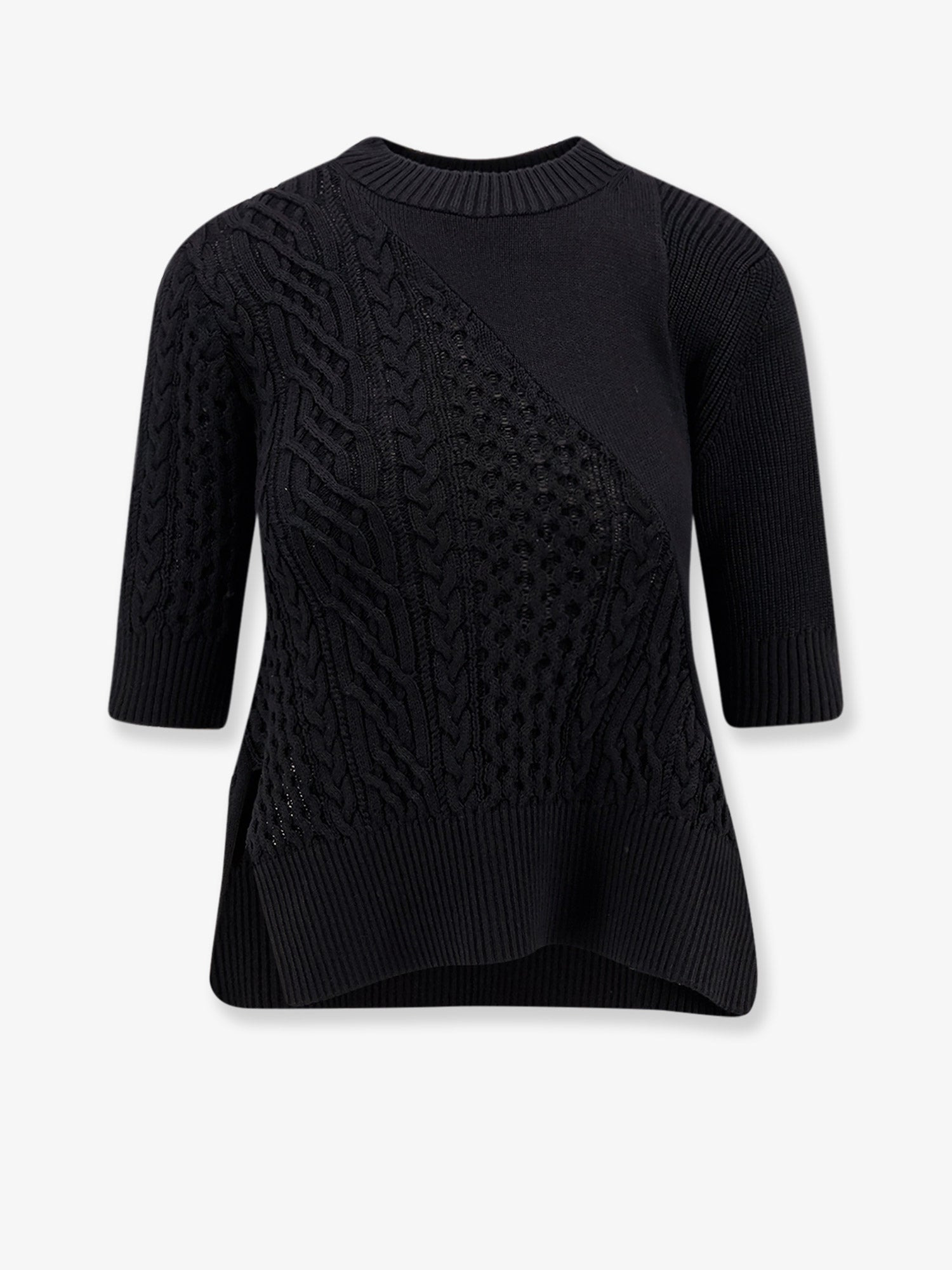 Brand: SACAI Product reference:2508018 Color reference:001 Color:Black Season:25A Gender:Woman Category 1:Abbigliamento Category 2:Knitwear Made in:CHINA Ribbed crew-neck Three-quarter sleeves Cable knit Side slits 57% cotton, 43% polyester SKU: 2508018001 Size Type: NUM SKU: 2508018 Our Products Are 100% Genuine. In All Cases We Stand By The Authenticity Of Every Product Sold On Our Site. All sales are final and we only accept returns for quality issue. Buyer is responsible for any import tax/duty if applicable.