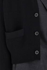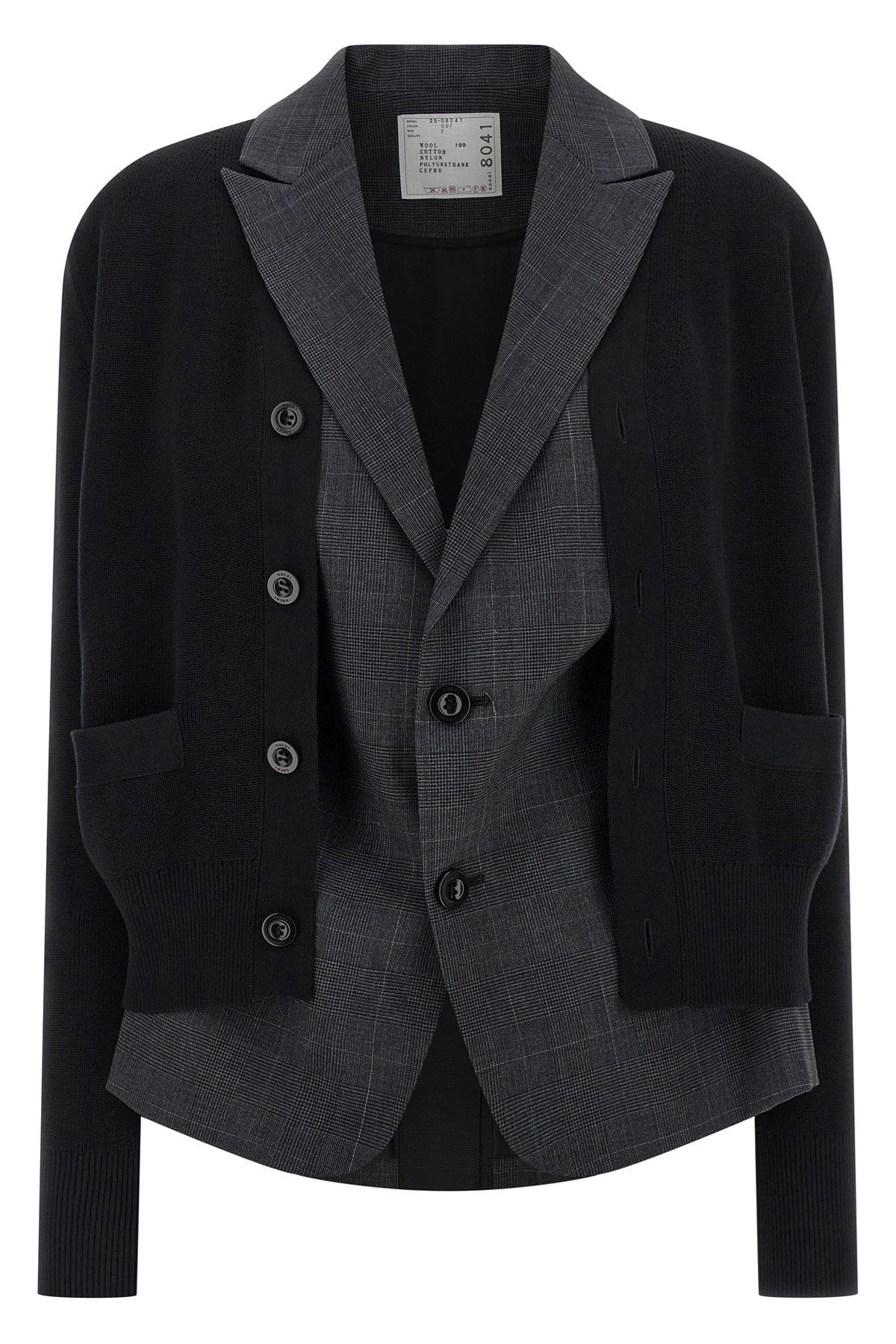 Double layer garment consisting of knitted wool cardigan, front button closure, long cuffed sleeves, pockets and insert blazer gilet in check wool and tulle, peak lapels, front button closure, flounced back. Color: Black Size & Fit: true to size fit Composition: 100% wool Made in: Japan SKU: 2508041001 Our Products Are 100% Genuine. In All Cases We Stand By The Authenticity Of Every Product Sold On Our Site. All sales are final and we only accept returns for quality issue. Buyer is responsible for any import tax/duty if applicable.