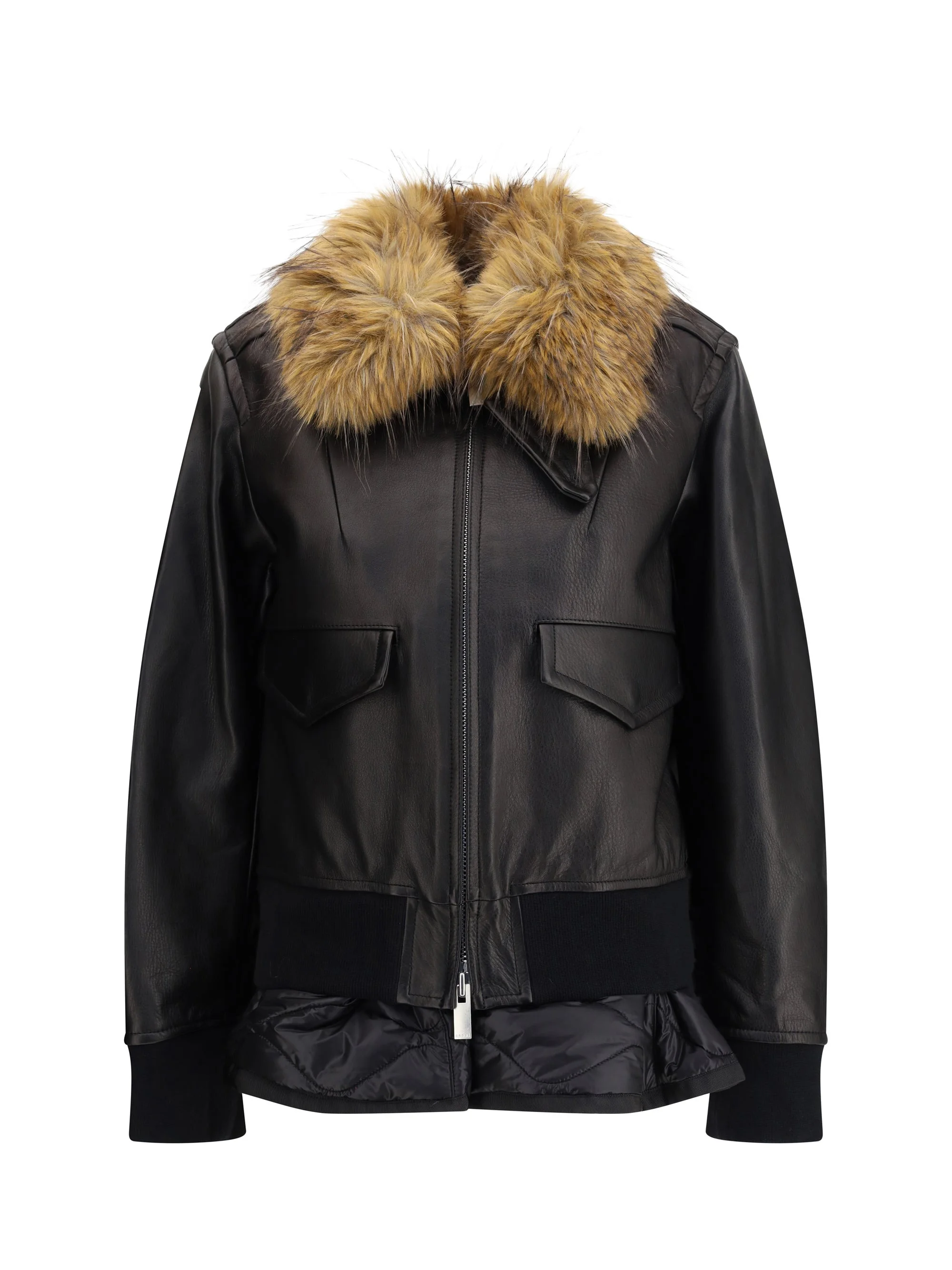 The Jacket by Sacai embodies the maison’s signature hybrid vision, blending contrasting textures and structures in a unique composition. The smooth Leather silhouette is paired with a quilted inner vest and a plush collar, both removable, adding versatility and character to the piece. A front zip closure, flap pockets, and ribbed trims complete a design that balances tailoring precision with contemporary experimentation. Size Type: NUM SKU: 2508238001 Our Products Are 100% Genuine. In All Cases We Stand By The Authenticity Of Every Product Sold On Our Site. All sales are final and we only accept returns for quality issue. Buyer is responsible for any import tax/duty if applicable.