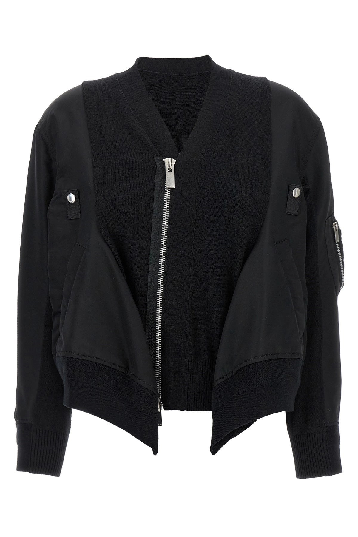 Wool cardigan with nylon inserts, zip closure and bomber-effect long sleeves. Color: Black Size & Fit: True to size fit Composition: 57% cotton, 43% polyester Made in: China SKU: 2507996001 Our Products Are 100% Genuine. In All Cases We Stand By The Authenticity Of Every Product Sold On Our Site. All sales are final and we only accept returns for quality issue. Buyer is responsible for any import tax/duty if applicable.