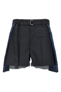 Cotton denim shorts with wool insert on the front, hook and button zip closure, removable grosgrain belt, pockets, wide leg with stretched pleat. Color: Blue Size & Fit: true to size fit Composition: 70% polyester, 30% wool Made in: Japan SKU: 2507828210 Our Products Are 100% Genuine. In All Cases We Stand By The Authenticity Of Every Product Sold On Our Site. All sales are final and we only accept returns for quality issue. Buyer is responsible for any import tax/duty if applicable.