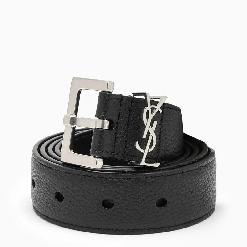 Saint Laurent Black Cassandre Belt In Grained Leather Men