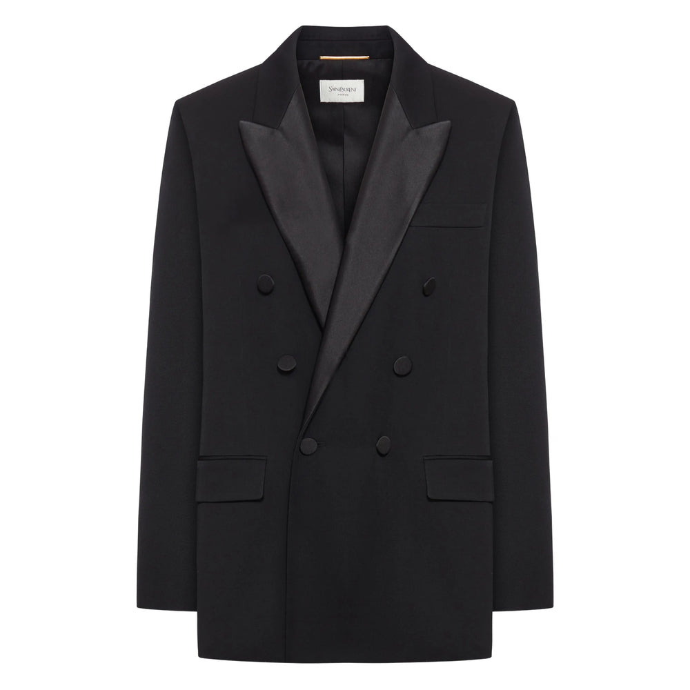 black satin peak lapels double-breasted button closure wool long sleeves MADE IN:ItalyMATERIAL:Wool: 100.0%COLOR:BLACK SKU: 837658Y7E631000 Our Products Are 100% Genuine. In All Cases We Stand By The Authenticity Of Every Product Sold On Our Site. All sales are final and we only accept returns for quality issue. Buyer is responsible for any import tax/duty if applicable.