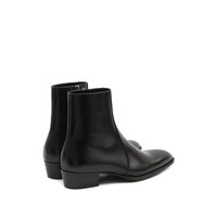 black calf leather almond toe side zip closure cuban heel leather sole MADE IN:ItalyMATERIAL:Outer Composition Calf Leather: 100.0%, Lining Composition Calf Leather: 100.0%, Sole Composition Calf Leather: 100.0%COLOR:BLACK SKU: 838183AAEI71000 Our Products Are 100% Genuine. In All Cases We Stand By The Authenticity Of Every Product Sold On Our Site. All sales are final and we only accept returns for quality issue. Buyer is responsible for any import tax/duty if applicable.