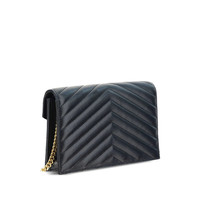 black lambskin chevron quilting signature YSL logo plaque envelope design chain-link shoulder strap foldover top with press-stud fastening partitioned compartment internal zip-fastening pocket internal card slotsMADE IN:ItalyMATERIAL:Outer Composition Lambskin: 100.0%COLOR:BLACK SKU: 742920AAA441000 Our Products Are 100% Genuine. In All Cases We Stand By The Authenticity Of Every Product Sold On Our Site. All sales are final and we only accept returns for quality issue. Buyer is responsible for any import tax/duty if applicable.