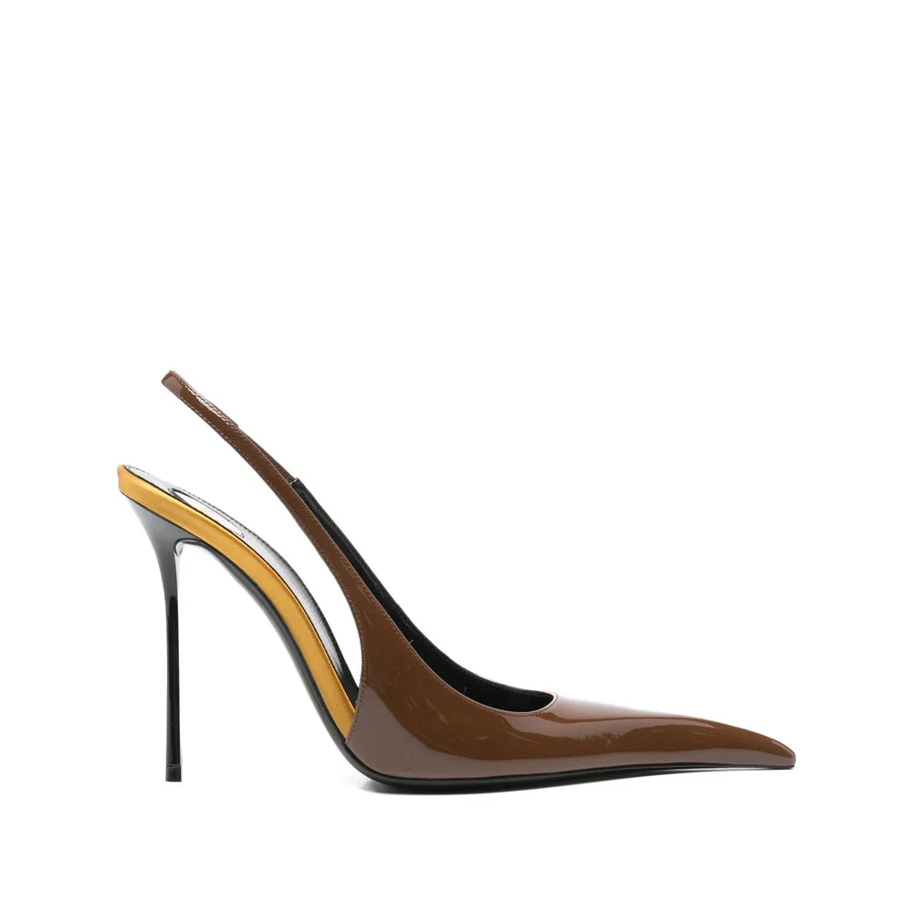 brown pointed toe slingback strap stiletto heel yellow insole black heelMADE IN:ItalyMATERIAL:Lining Composition Calf Leather: 100.0%, Sole Composition Calf Leather: 100.0%, Outer Composition Patent Calf Leather: 100.0%COLOR:BROWN SKU: 8500721TVBK2584 Our Products Are 100% Genuine. In All Cases We Stand By The Authenticity Of Every Product Sold On Our Site. All sales are final and we only accept returns for quality issue. Buyer is responsible for any import tax/duty if applicable.