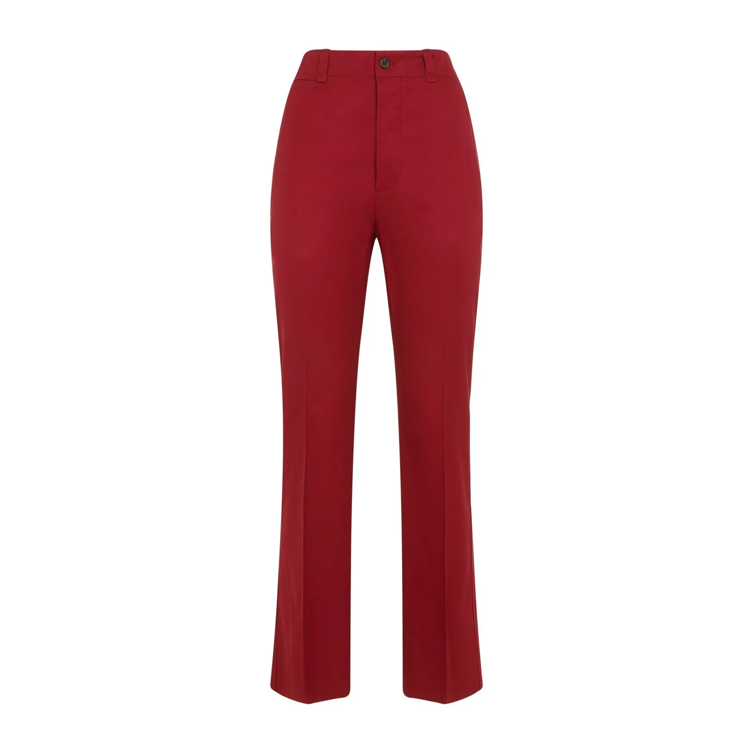 Saint Laurent Rouge Cotton Pants. Rouge Cotton, high waist, front button and zip fastening, belt loops. Crease on front, straight legs, 4-pocket style, regular fit. Cotton | 100%COTTON Size Type: IT SKU: 786680Y3A99Red Our Products Are 100% Genuine. In All Cases We Stand By The Authenticity Of Every Product Sold On Our Site. All sales are final and we only accept returns for quality issue. Buyer is responsible for any import tax/duty if applicable.