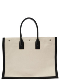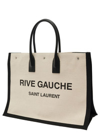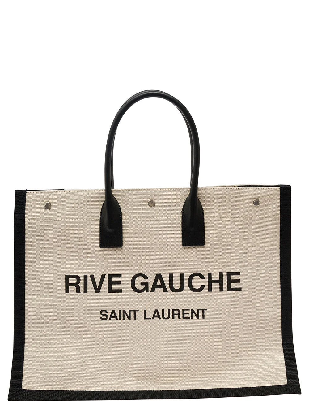 Saint Laurent Men 'Big Rive Gauche' Beige Tote Bag With Contrasting Logo Print In Cotton And Linen M