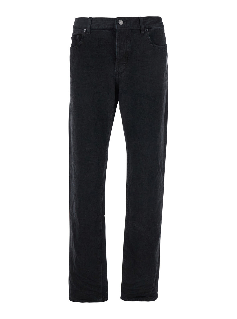 Saint Laurent Men Black Five Pocket Jeans With Logo Patch On The Back In Denim Man