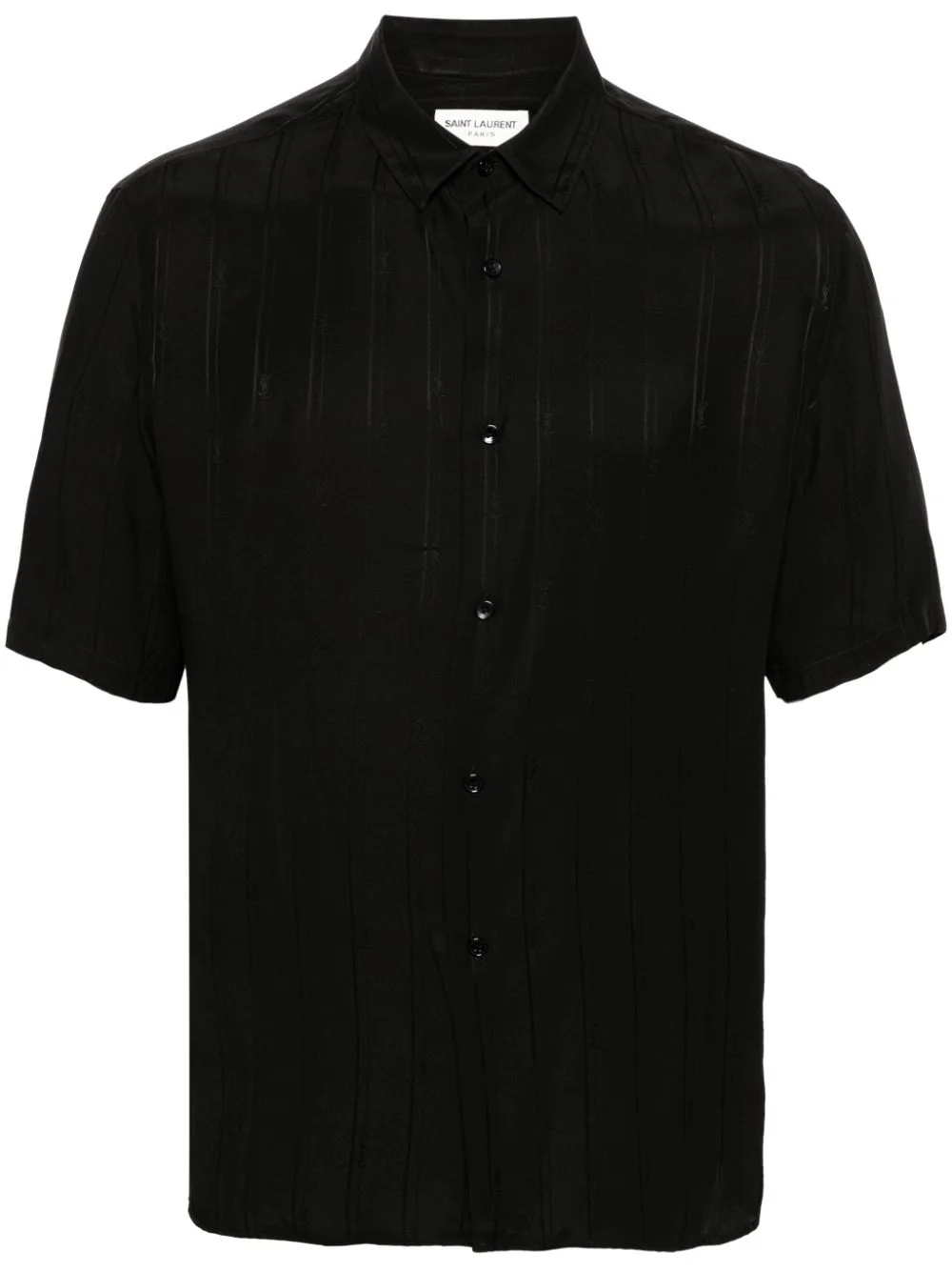 DESCRIPTION ::black organic silk signature Cassandre logo motif vertical stripe pattern classic collar front button fastening short sleeves short side slits straight hemMADE IN::ItalySIZE & FIT::CHEST: 108.0 CentimetresSLEEVE LENGTH: 53.0 CentimetresShoulder Width: 49.0 CentimetresCOLOR::BLACK SKU: 601070Y6H391000BLACK Our Products Are 100% Genuine. In All Cases We Stand By The Authenticity Of Every Product Sold On Our Site. All sales are final and we only accept returns for quality issue. Buyer is responsible for any import tax/duty if applicable.
