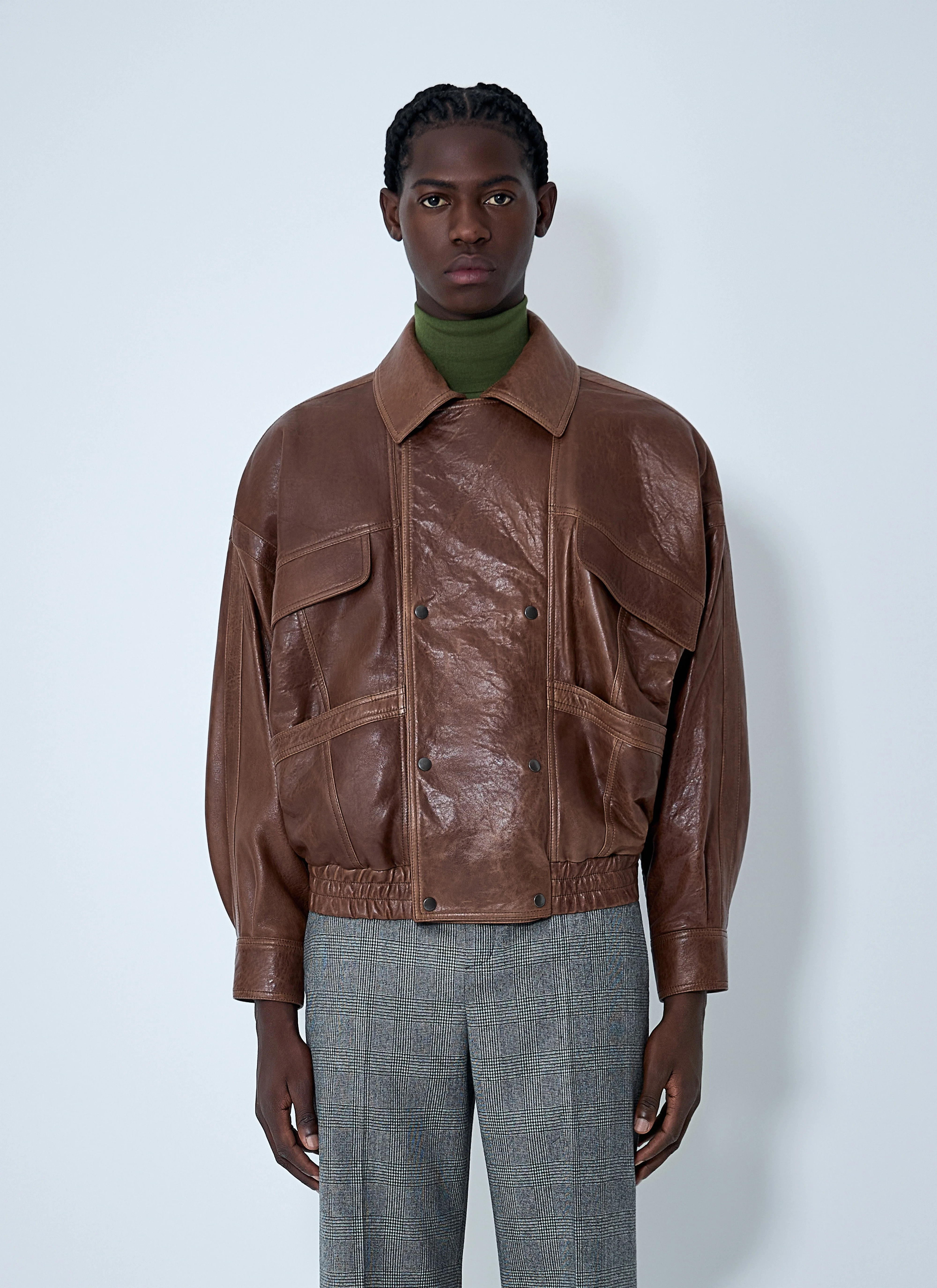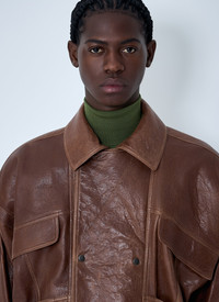 double-breasted pocket-leather jacket