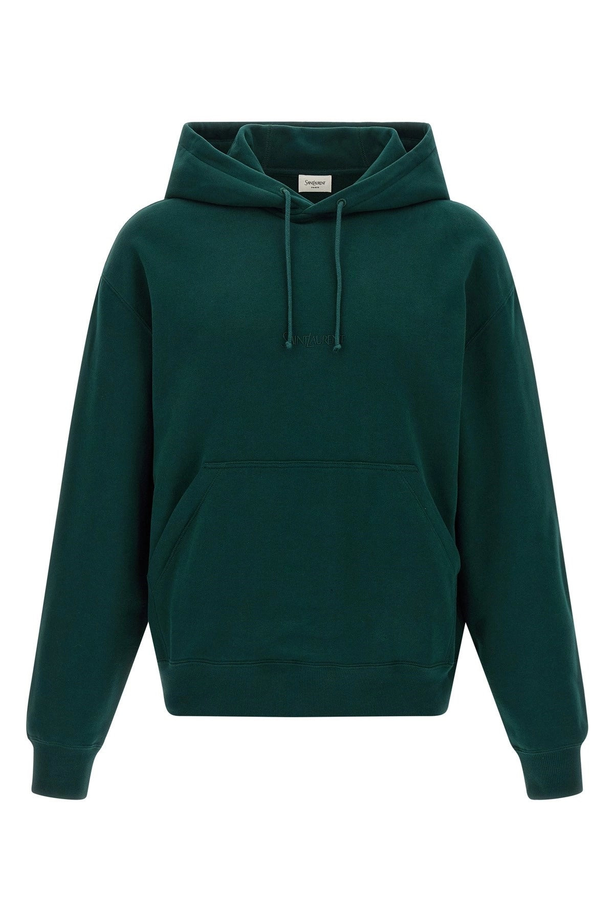 Fleece cotton hoodie with tonal 'Saint Laurent' embroidery on the front, kangaroo pocket, long cuffed sleeves and dropped shoulders. Color: Green Size & Fit: true to size fit Composition: 100% cotton Made in: France SKU: 818538Y36SW3041 Our Products Are 100% Genuine. In All Cases We Stand By The Authenticity Of Every Product Sold On Our Site. All sales are final and we only accept returns for quality issue. Buyer is responsible for any import tax/duty if applicable.