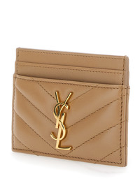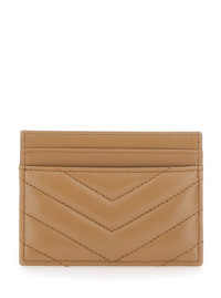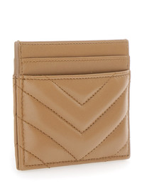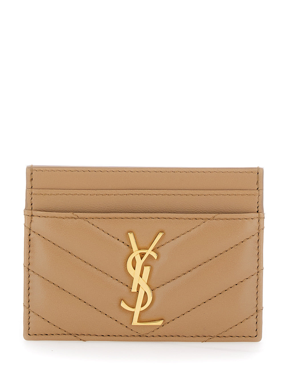 Saint Laurent Women Beige Card Holder With Cassandre Plaque On Front In Chevron Leather Woman