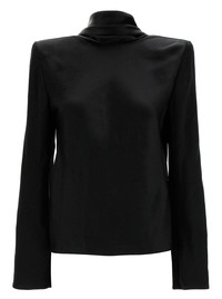 Saint Laurent Women Black Blouse With Cowl-Back In Silk Satin Woman